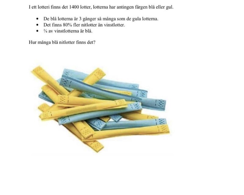 Uppgiften är inte att räkna ut hur många nitlotter det finns. Uppgiften är att räkna ut hur många BLÅ nitlotter det finns.