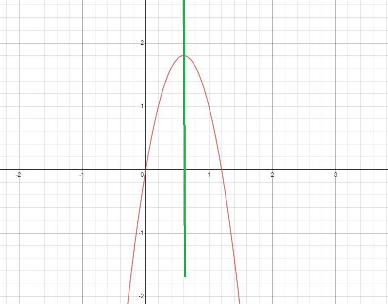 Den här maximipunkten ligger på något som heter en symmetrilinje. Symmetrilinjen är däör grafen/funktionen ser likadan ut på båda sidor