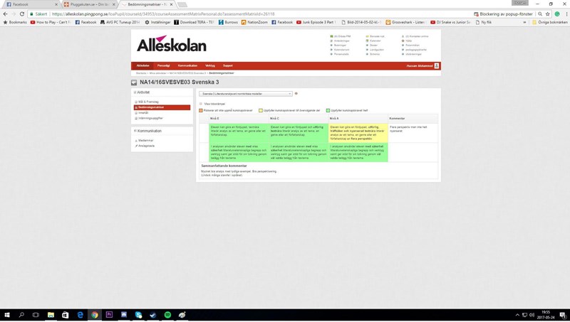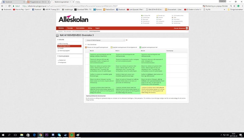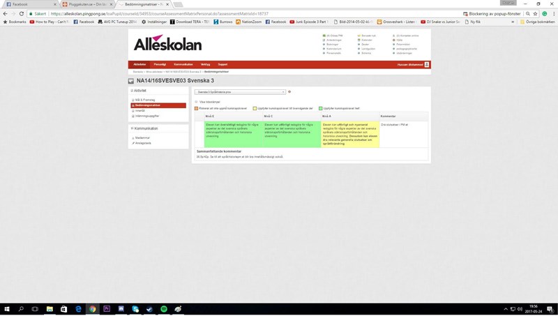 Jag blev väldigt förvånad och skrev fort till henne hur jag möjligtvis kunde få ett C, jag kan väl inte ha sänkt mig sedan vårat betygsamtal. Hon menar då att PM är en central del i Svenska 3 och därför kan hon inte sätta högre än C. Då är min fråga till er, om det finns några Svenska lärare eller personer som är insatta i betygssystemet. Ska det verkligen vara så att min samlade bedömmning blir ett C när jag presterat MINST C på alla uppgifter vi har fått? Jag har fått A på flertal uppgifter (se bifogade bilder) ska dessa bara glömmas bort för att en vetenskaplig text är centralt i kursen? Det är väl just därför vi har ett mellanbetyg, B?
