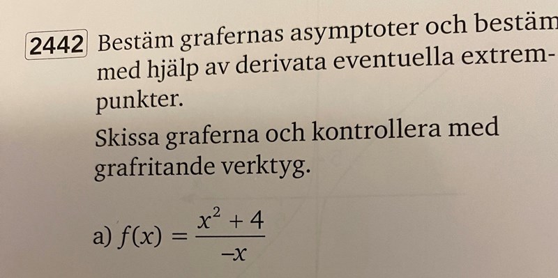 Utför divisionen. Det blir f(x) = -x - 4/x