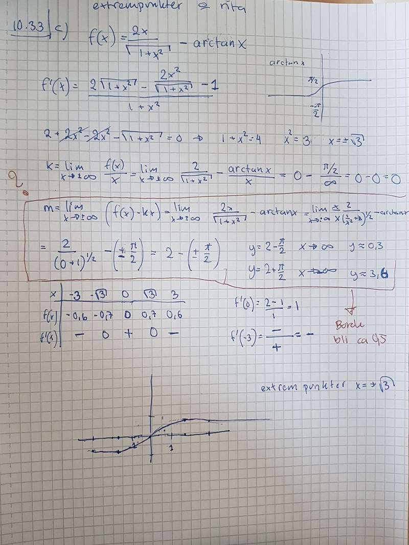 Jag får fel värde när jag räknar ut m-värdet för de sneda asymptoterna som borde bli ca 0,5. Se inringat på bilden. I övrigt verkar allt vara rätt.