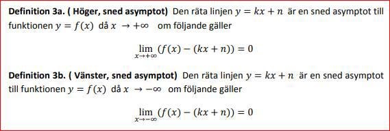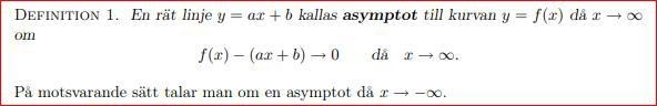 En uppgift lyder bestäm den sneda asymptoten till kurvan y = f(x) om