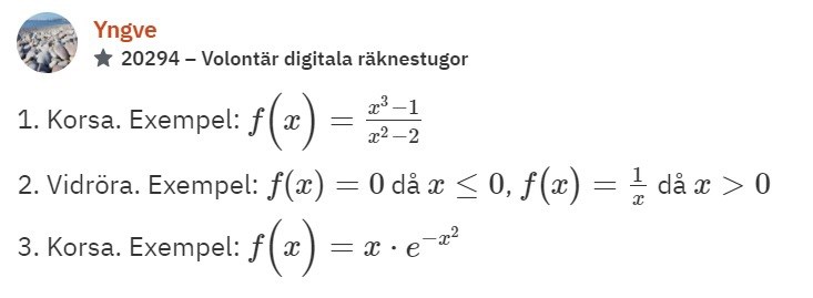 Om jag då följer råden så får jag och det är rätt svar, men när jag skriver in grafen så ser det mer ut som en tredjegradsekvation i grafräknaren och i Geogebra blir det endast en rät linje.