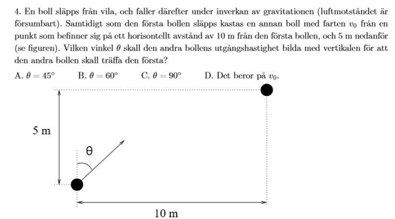 alternativ c kan man stryka på grund att om kastar bollen rakt upp möter bollarna aldrig varandra