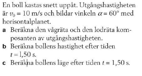 på c) har jag fått ut läget i x-led: x=Vx*t=5*1,5=7,5m