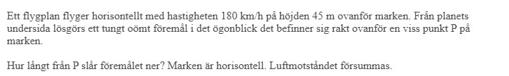 Säg att du står på punkten P och tittar rakt upp mot himlen. När ett flygplan passerar precis rakt ovanför dig släpps ett föremål från det.