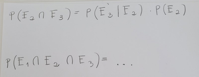 P(E1 snitt E2 snitt E3) = P(E1 snitt E2)P(E3 | E1 snitt E2) = ...