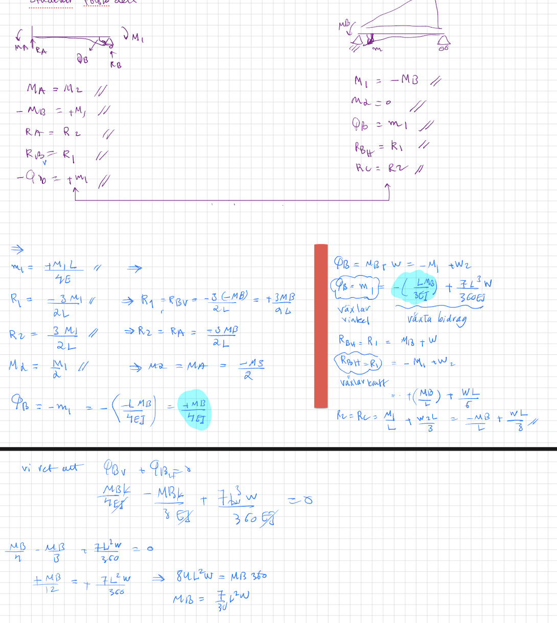 Hej ! jag får ett annat svar en facit, hade ni kunnat hjälpa mig? Det är trorligen att någon av oss har tecken fel- eftersom mitt mina Mb har samma belopp som facit men olika tecken på allt, och jag utgår ifrån att summan av vinkarna är noll, men i facit så subtraherar de vinklarna från varandra, vilket låter konstigt för mig