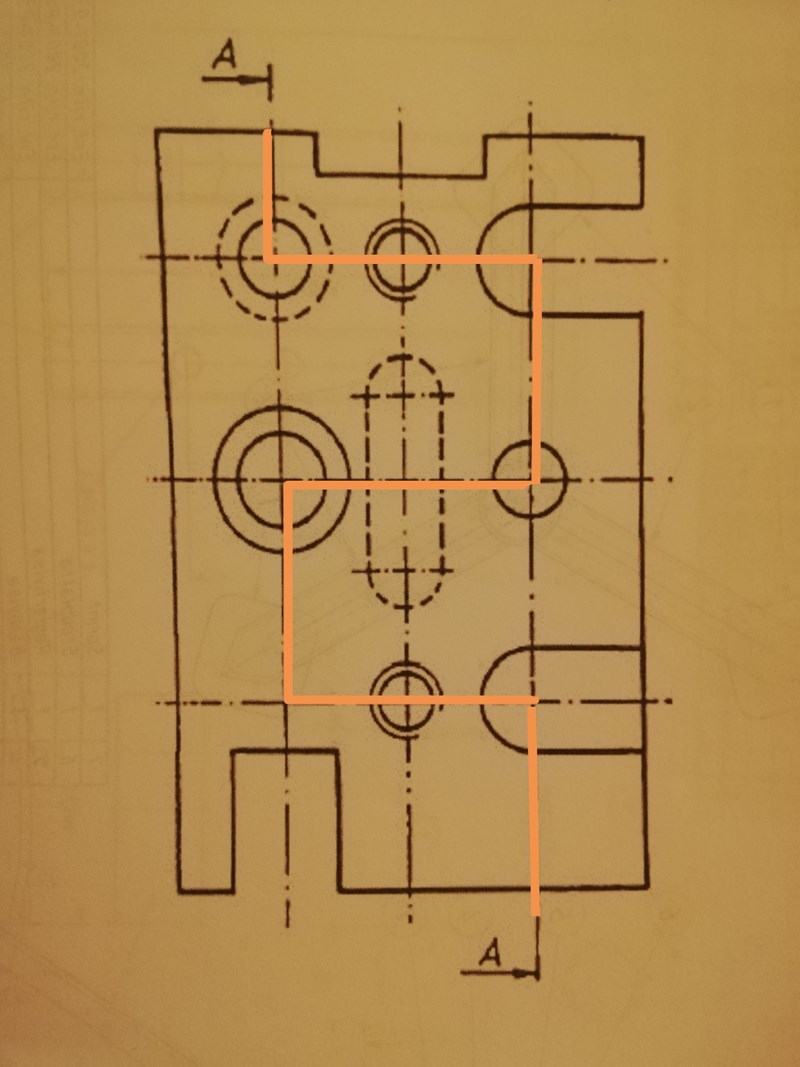 Någon ritteknikkunnig som kan guida mig här? Uppgiften är att rita ut snittplanet A-A, samt sedan rita snittvyn.
