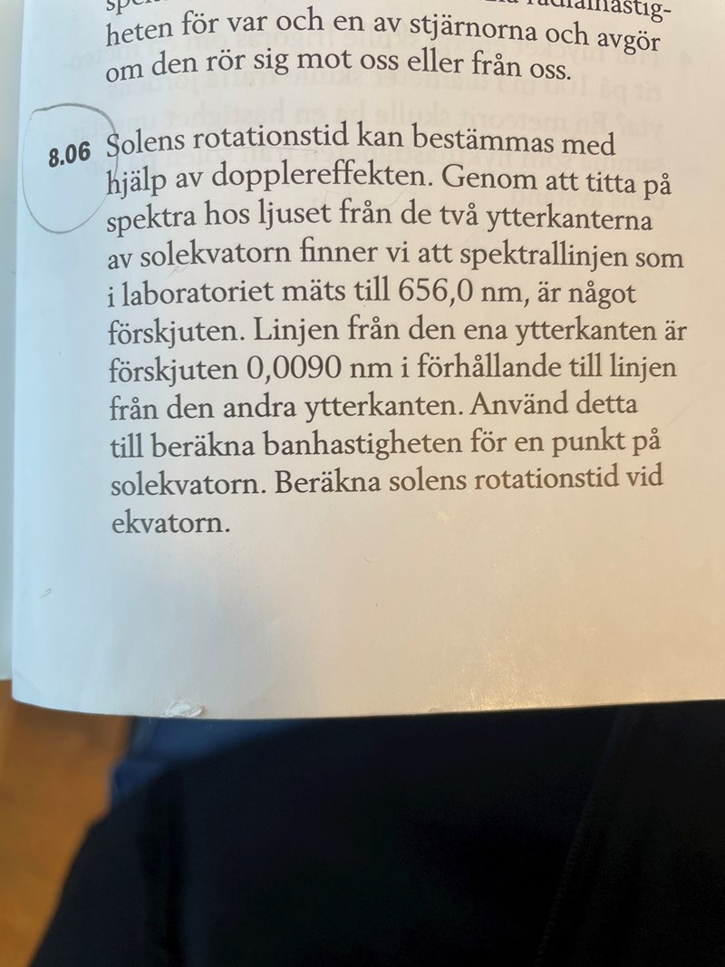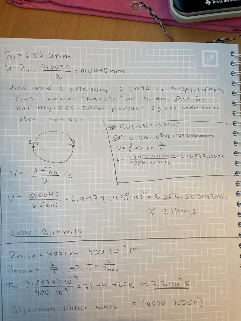jag har räknat så här(det är i rektangeln jag försökt räknat ut rotationstiden, de andra är resten av frågan. Vilket är rätt):