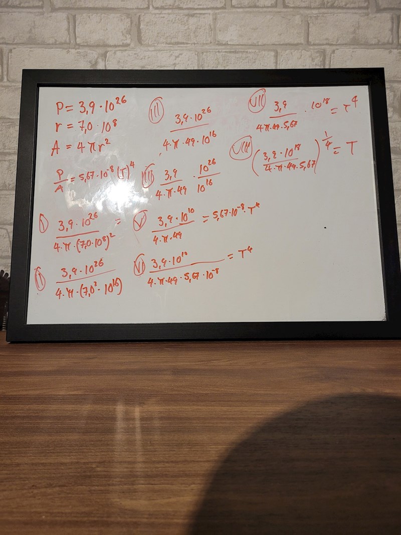P = 3,9 * 1026 W och har radien r = 7,0 * 108 m. Använd Stefan-Boltzmanns lag för att uppskatta solens yttemperatur T