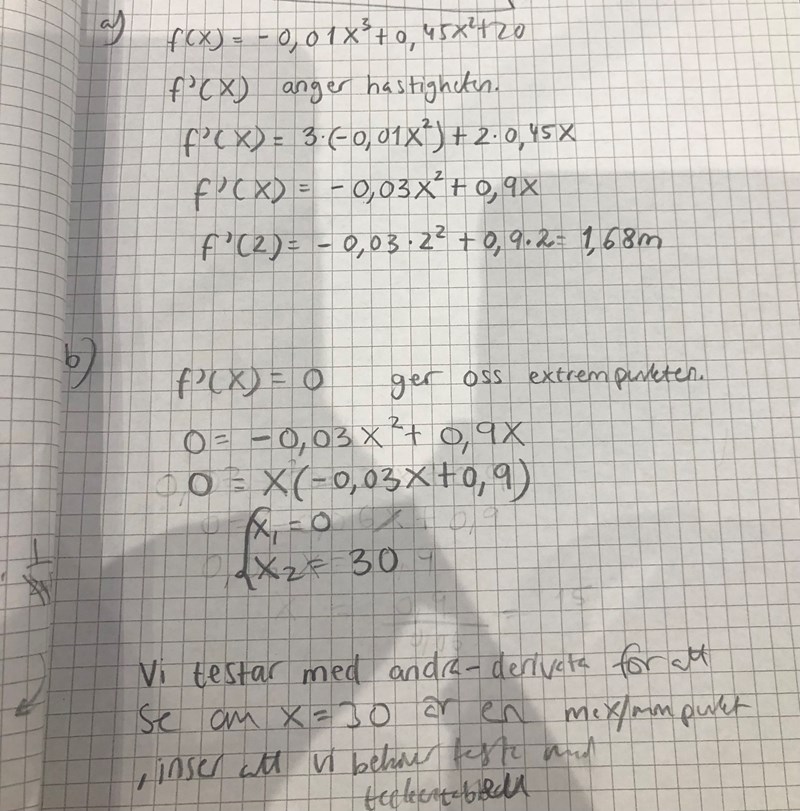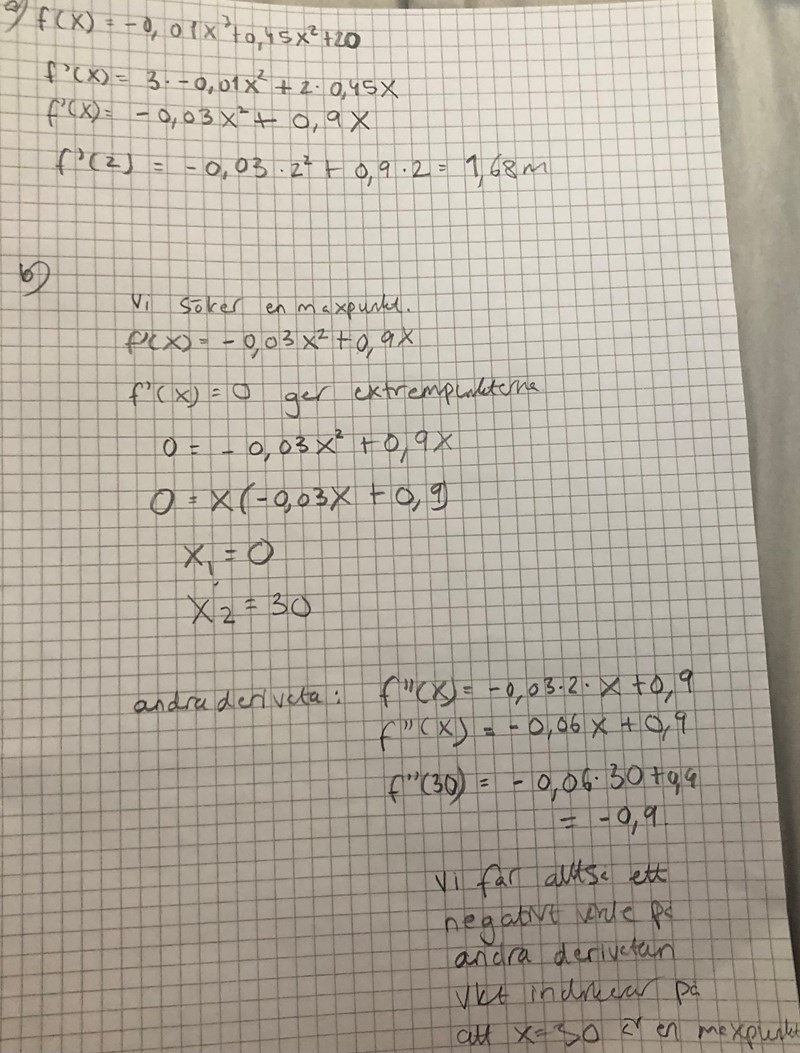 Vad fick du för resultat av att kontrollera med andraderivatan, dvs vad fick du f''(30) till?