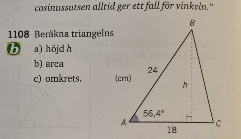 Man får en ledtråd i facit som är sin(56,4)=h/24. Jag förstår sambandet men det blir inte rätt av att bara multiplicera båda sidor med x24 för att få h fritt. Jag förstår inte om jag måste göra något mer eller bara tolkar svaret fel.