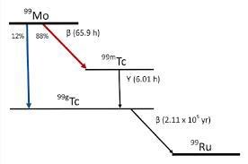 Jag har nu kollat och det är som jag hade gissat: en del av molybden sönderfaller till grundtillståndet av teknetium. Enligt det här diagrammet är det 88 % som hamnar i det metastabila tillståndet, och det verkar stämma med din figur.