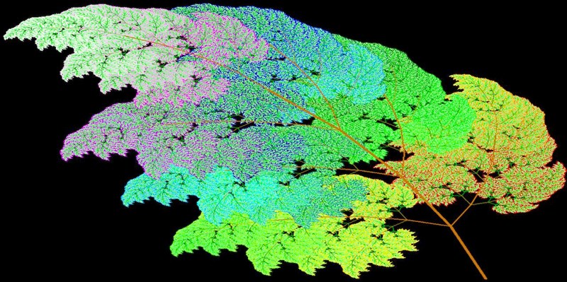 Eftersom vi inte kan skicka en blomma såhär digitalt ville vi ha en bild istället. Vi fastnade för ett Lindenmayer-system: Växande från en stadig stam, i ständigt nya iterationer och vinklar, men alltid följande samma grundläggande princip.