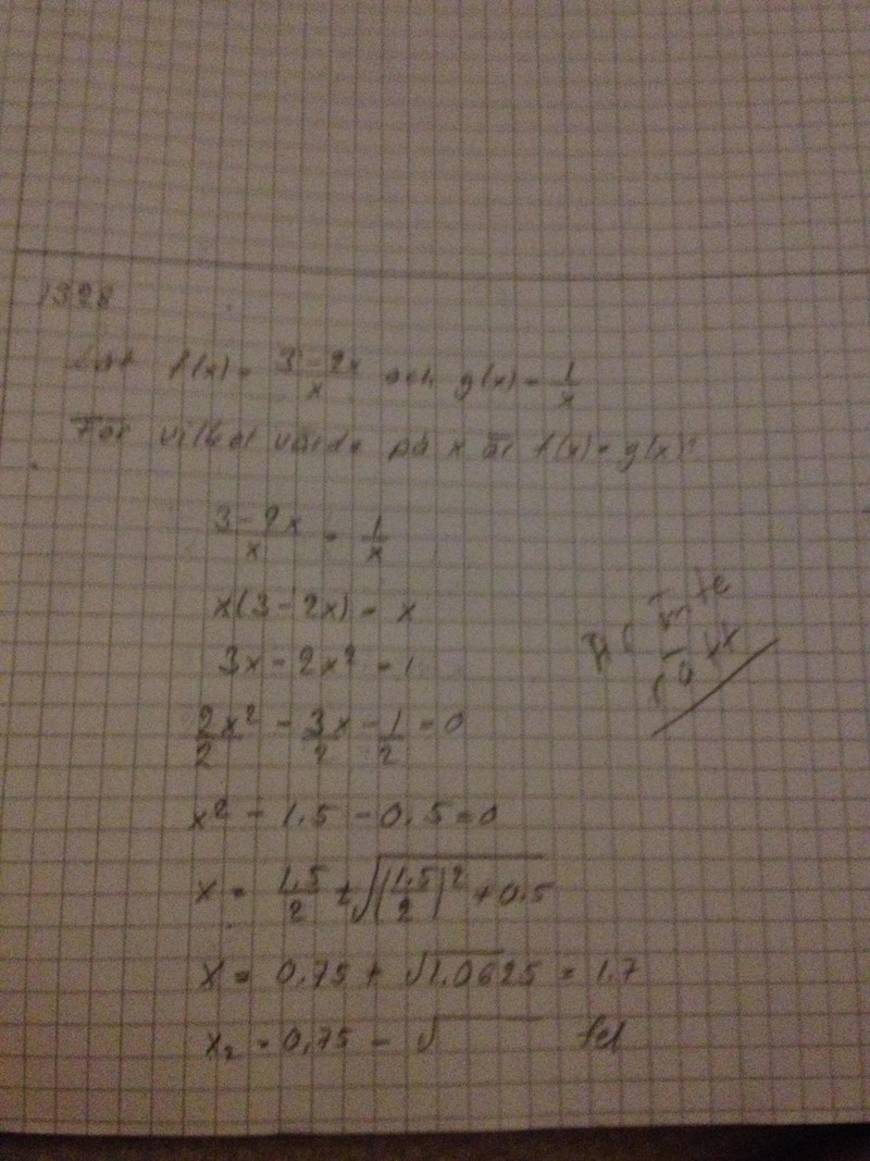 sorglig sak idag (för vilket värde på x är f(x)=g(x)