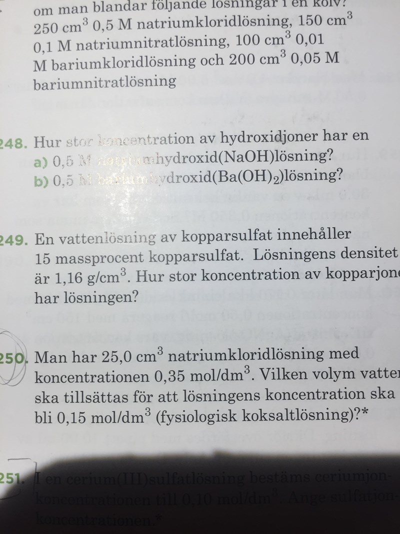 Sedan så vet du att förhållandet mellan substansmängd, volym och koncentration är n = cV, du vet vad substansmängden och koncentrationen är så lös för V.