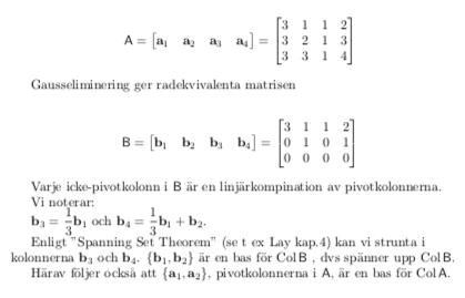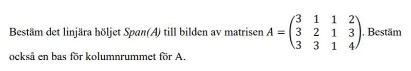 Sedan vet vi ju även att im(A) är det linjära höljet av kolumnerna i matrisen A.