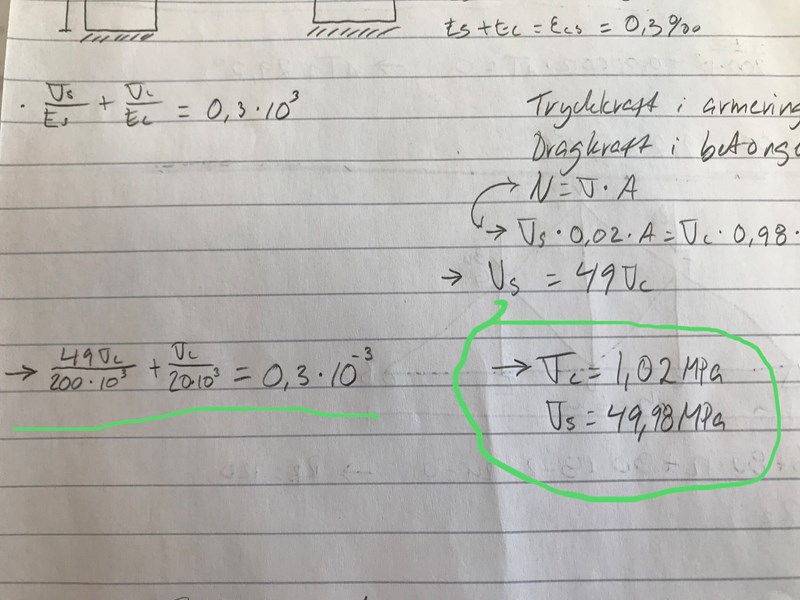 Hej. Sitter och räknar ut spänning hos betongbalk med armeringsstänger. Har fastnat på sista momentet och skulle vilja ha tips på hur jag får fram spänningen V i HL..