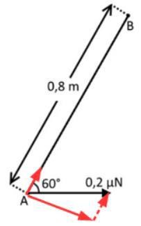 Jag menade hypotenusan i den stora triangeln, alltså 0,8 m vilket är avståndet mellan AB, uppgiften handlar om att man ska ta reda på spänningen mellan dem och då gäller det att ha en sträcka - min undring var då varför användes inte 0,8 m i den formel jag använde.