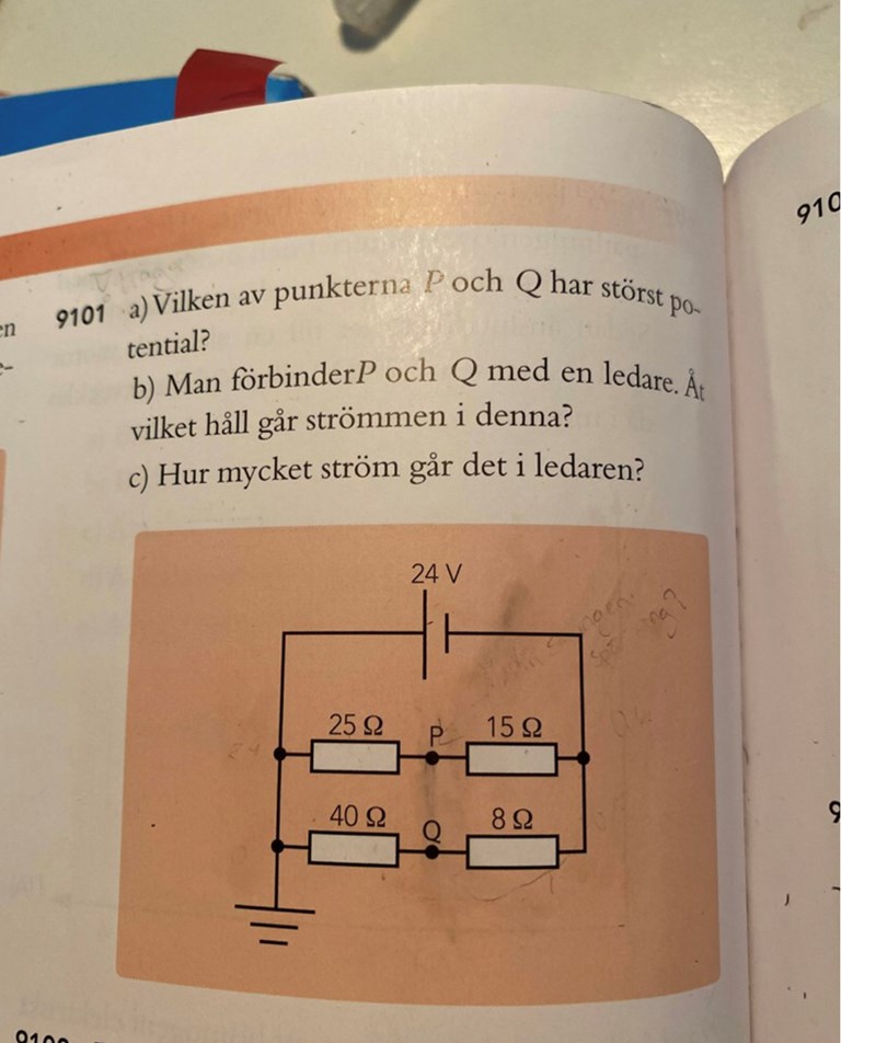 Jag har räknat ut att spänningen vid punkten P är 15V medans spänningen vid punkten Q är 20 V. Hur kommer det isåfall sig att punkten P har större spänning än punkten Q?