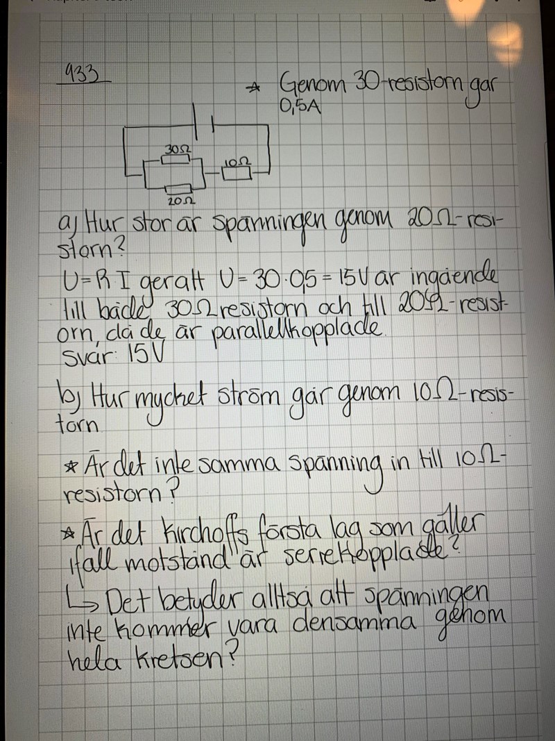 Hej! Jag försöker få klart för mig vad som gäller. Jag har kommit fram till att vid en parallellkoppling så kommer den ingående spänningen att vara samma, men om jag förstår det rätt så kommer spänningen vid en seriekoppling inte vara samma för påföljande motstånd? Utan då tillämpas Kirchoffs första lag istället?
