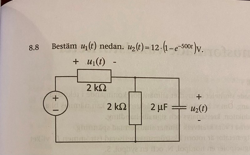 Har kört fast på denna uppgift! Förstår inte riktigt hur jag ska göra då spänningskällan är okänd. Jag förstår dock att spänningen u2 samt spänningen över resistansen är lika stor då dom är parallelkopplade. Men längre en så kommer jag inte. Kan tänka mig att detta är något väldigt enkelt, bara att jag inte förstår hur man ska göra