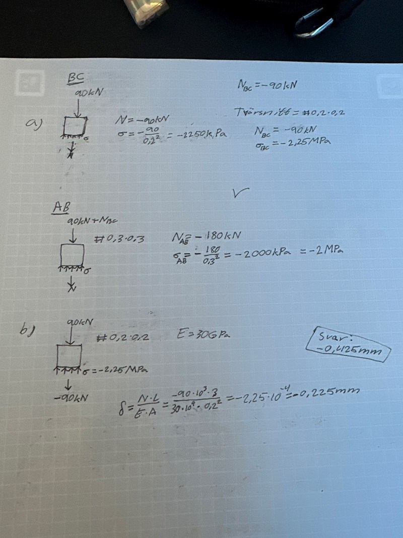 Löste uppgiften genom att räkna ut längdförändringen i AB och sedan addera ihop förkortningen hos BC och AC för att få totala längdförändringen hos BC.