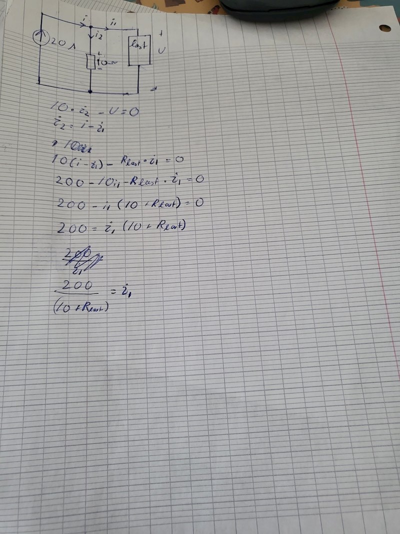 Ok, då förstår jag att KVL inte fungerar. Jag försökte med strömgrening och Ohms lag, men de gav också fel svar. Vad kan vara det första steget för att lösa den här?