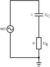 Hej! Är det möjligt att beräkna spänningen över kondensatorn (och resistorn) om man har följande krets och värdena: