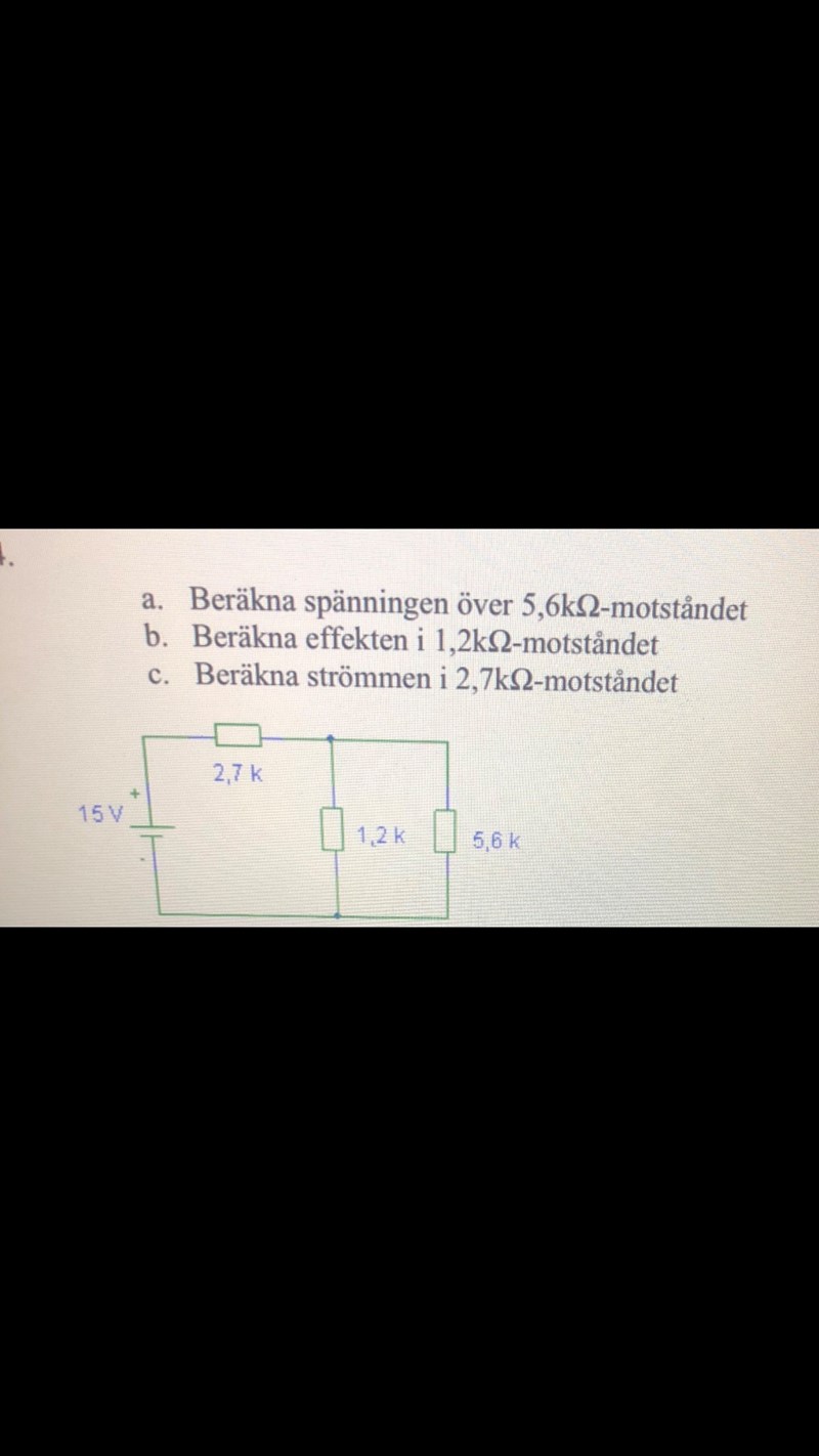 så, börja med att räkna ut ersättningsmotsåndet för de 2 parallellkoplade motstånden 1,2k och 5,6k.