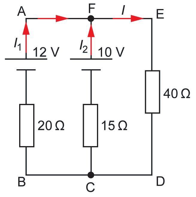 Jag är medveten om att jag behöver använda mig av Kirchhoffs första lag där I1+I2=I. Däremot har jag svårt med att förstå hur jag kan få ihop olika samband för att få ut I och beräkna spänningen över motståndet.