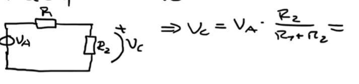 Spänningsfallet över R2 blir då Vc = I * R2 = (Va/(R1+R2)) * R2 = Va * R2/(R1+R2)