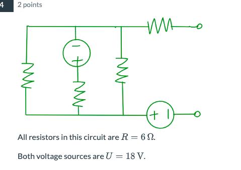 Mäter man med en högohmig voltmeter över terminalerna går det ingen ström genom det högra motståndet eller den högra spänningskällan. Den vänstra spänningskällan levererar ström till de resterande tre motstånden.