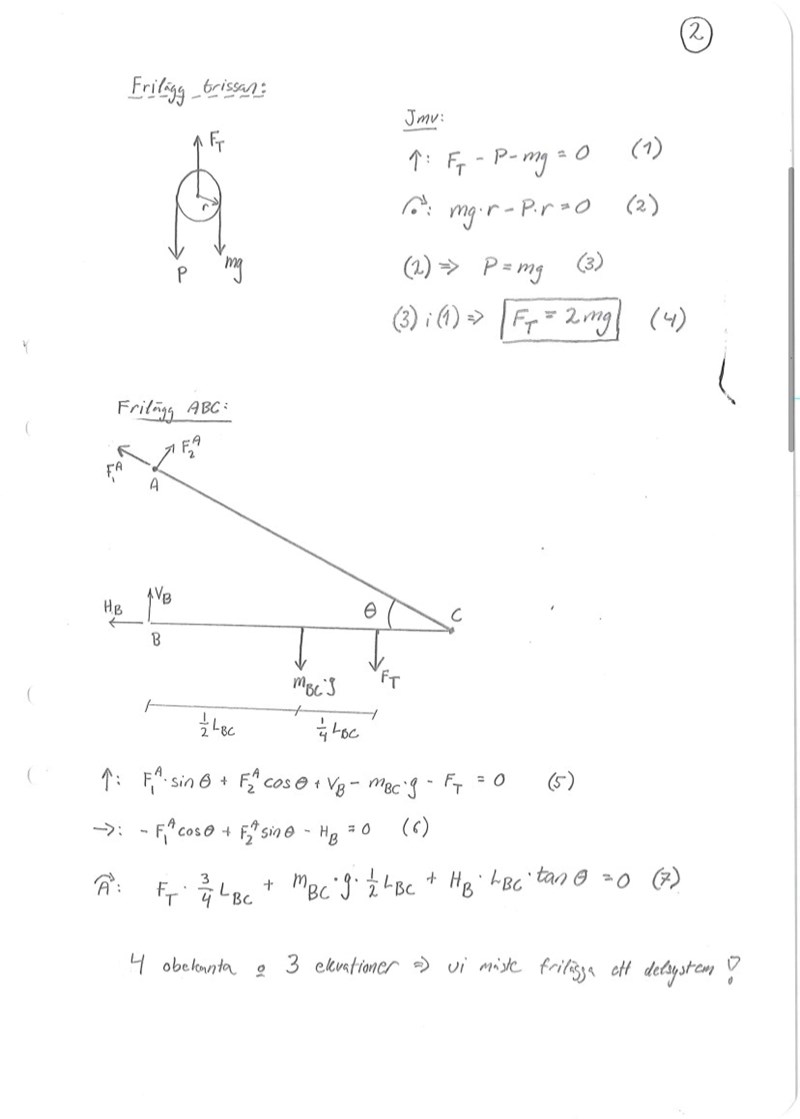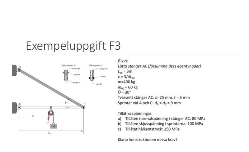 Du har ett erforderligt hålkanttryck på 100 MPa. Detta betyder exakt att bärförmågan är begränsad och att stången kommer gå sönder vid högre tryck. Om du frilägger ABC ser du att du har: