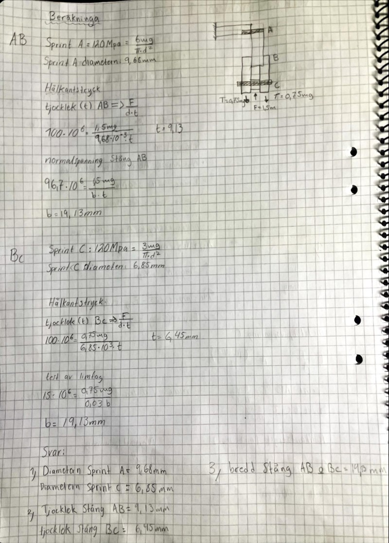 Spänningsberäkningar för stångens svagaste del?