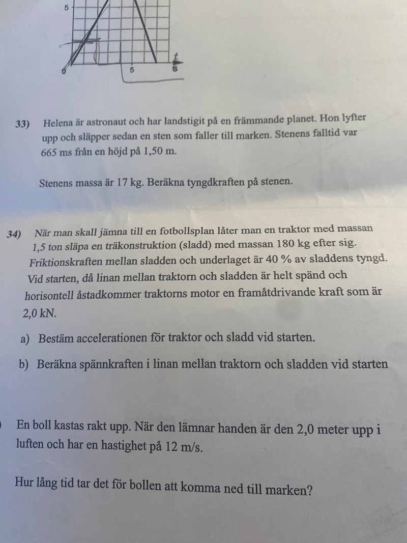 Hej jag förstår inte 34b. Man ska beräkna spännkraften mellan traktorn och linan. Jag tänkte att man kunde göra en triangel av traktorns tyngdkraft och friktionskraften och ha spännkraften som hypotenusan och beräkna på så sätt men det blir fel.