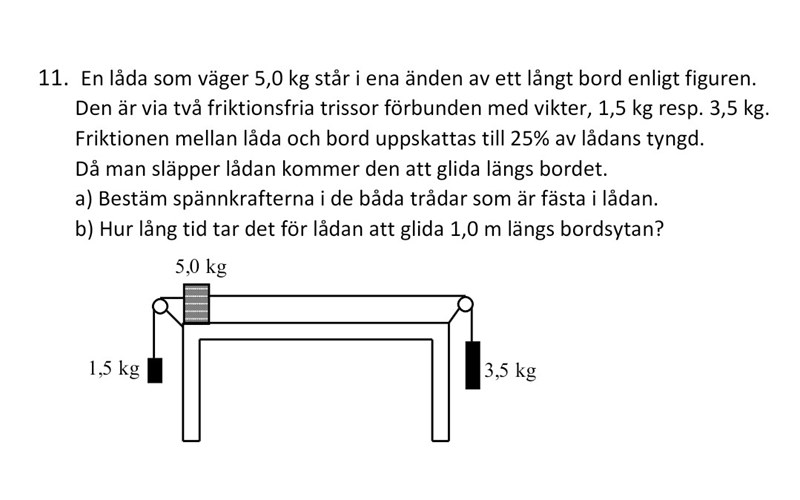 Fritinonen mellan lådan och bordet man räknar på det här sättet Ff = 5 * 0,25 = 1,25 N
