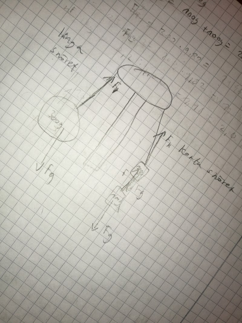 Jo det vet jag, därför är jag förvirrad över hur man ska räkna kraft för den långa respektive korta snöret eftersom de båda ej är i jämvikt utan rör sig.