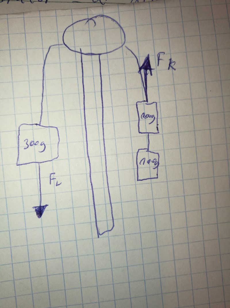 Jag har ritat som du ser men jag vet ej hur du vill att den ska se ut. Jag kan ha missförstått dig, det enda jag kan se justnu är att det går en kraft nedåt hos 300 g och uppåt på smöret och samma på den andra vikten.