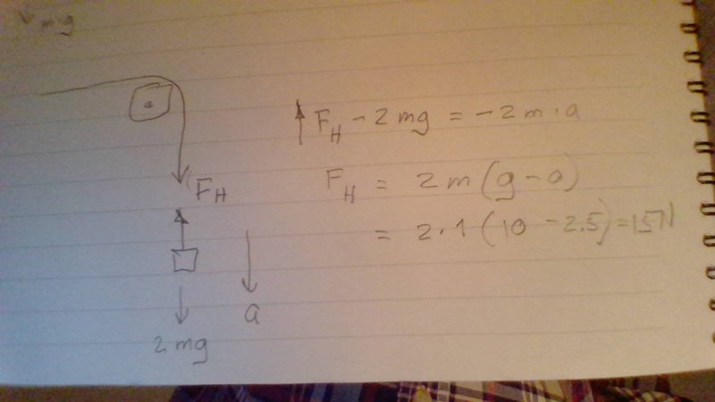 Kraftekv (uppåt) för hö massan Fh -2mg=-2ma