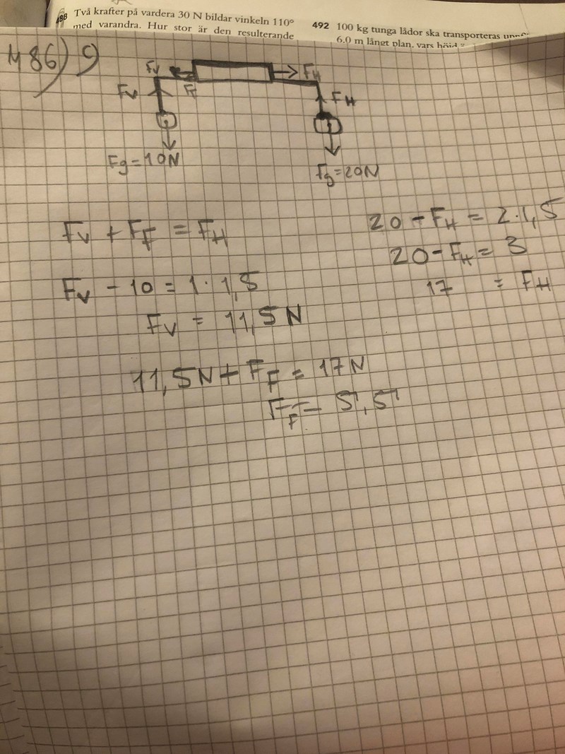 Genom Newtons lag kan jag ställa upp ekvationen och räkna ut Fv.