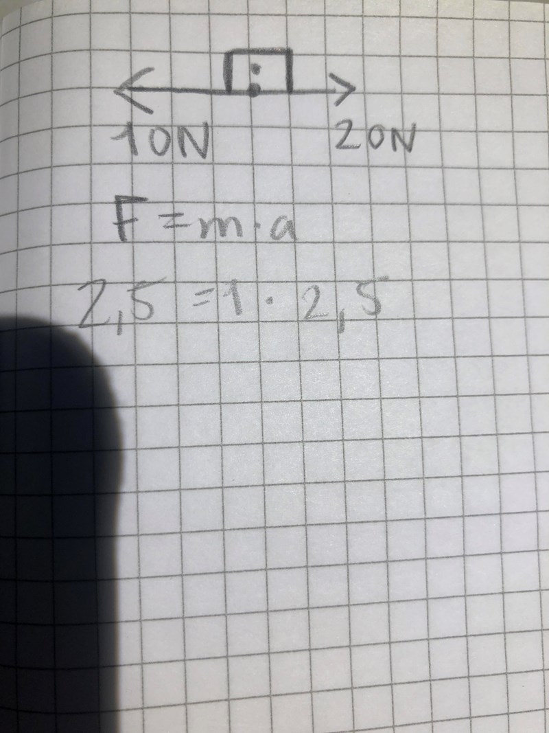 I den högra sidan är kraften 20N. Men den accelerar med 2.5m/s^2