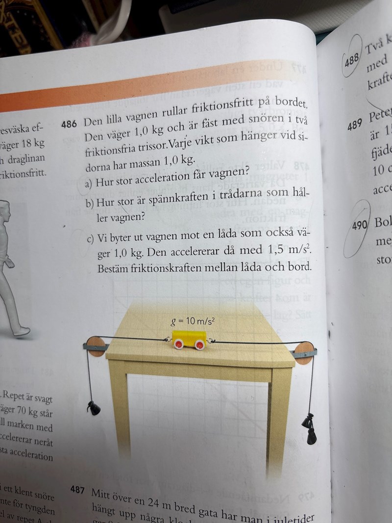 Jag har fastnat på fråga b i denna uppgift. Jag har löst a) som är a=2.5 m/s^2 och löst halva b) uppgiften.
