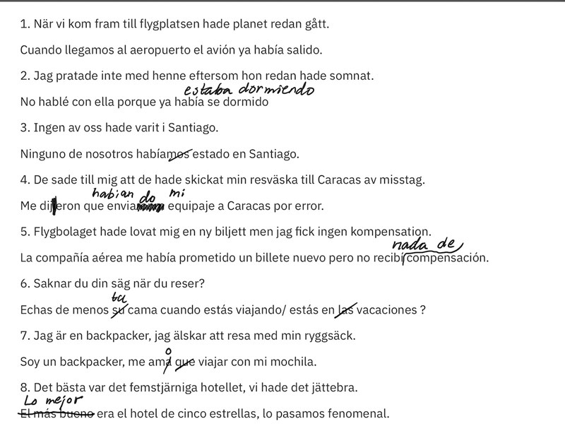 Spanska 4: Har jag översatt från svenska till spanska korrekt?