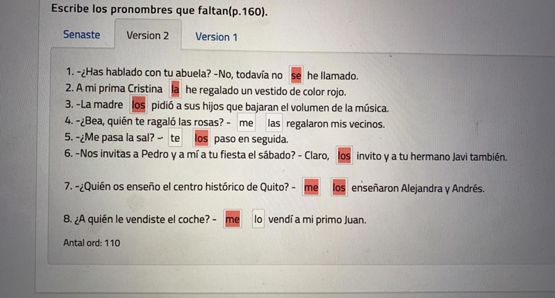 Du har skrivit: Alejandra och Andrés visade dem (los)för mig (me)
