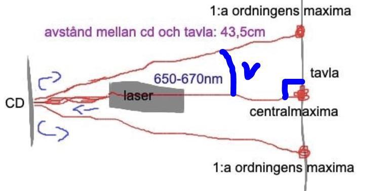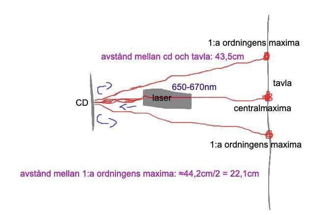 Ska jag då rita av själva CD skivan, tavlan, laserpekaren och markera ut första ordnings & centralmaximum?