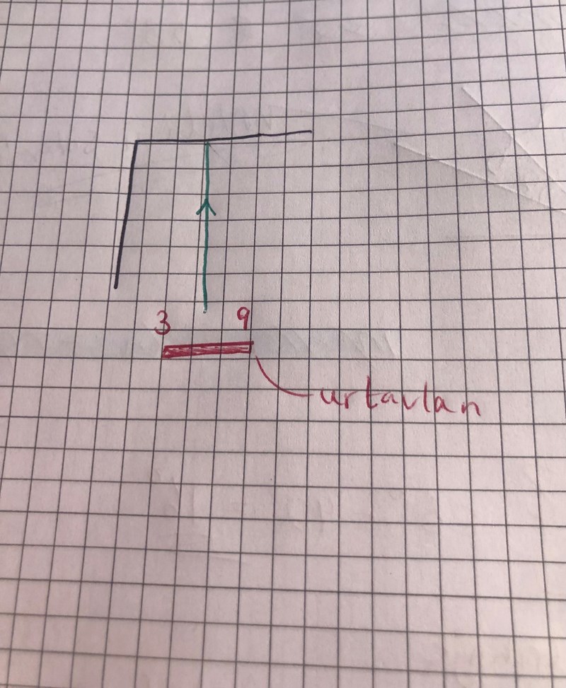 Dra ett streck som är urtavlan och skriv en 3:a och 9:a på rätt ställe så du vet var de sitter på urtavlan uppifrån sett.