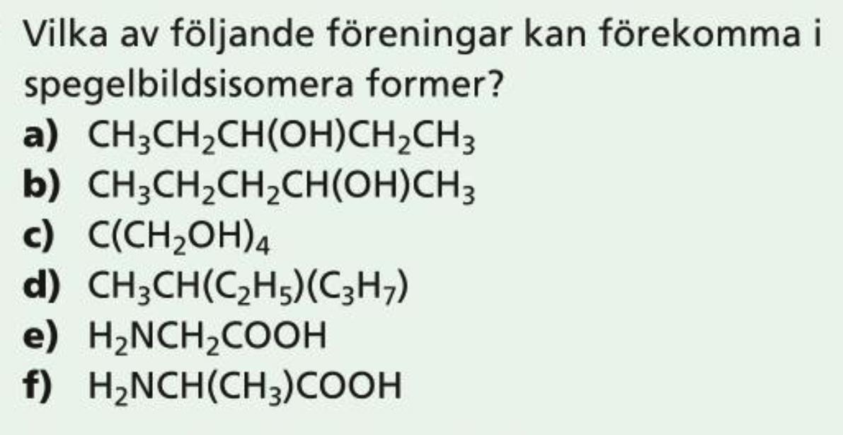 Dessutom är det inte H2 och N var för sig, utan amingruppen NH2. Så du har en kolatom som dels binder två väteatomer, dels NH2 och dels COOH. Den binder alltså inte fyra olika grupper.