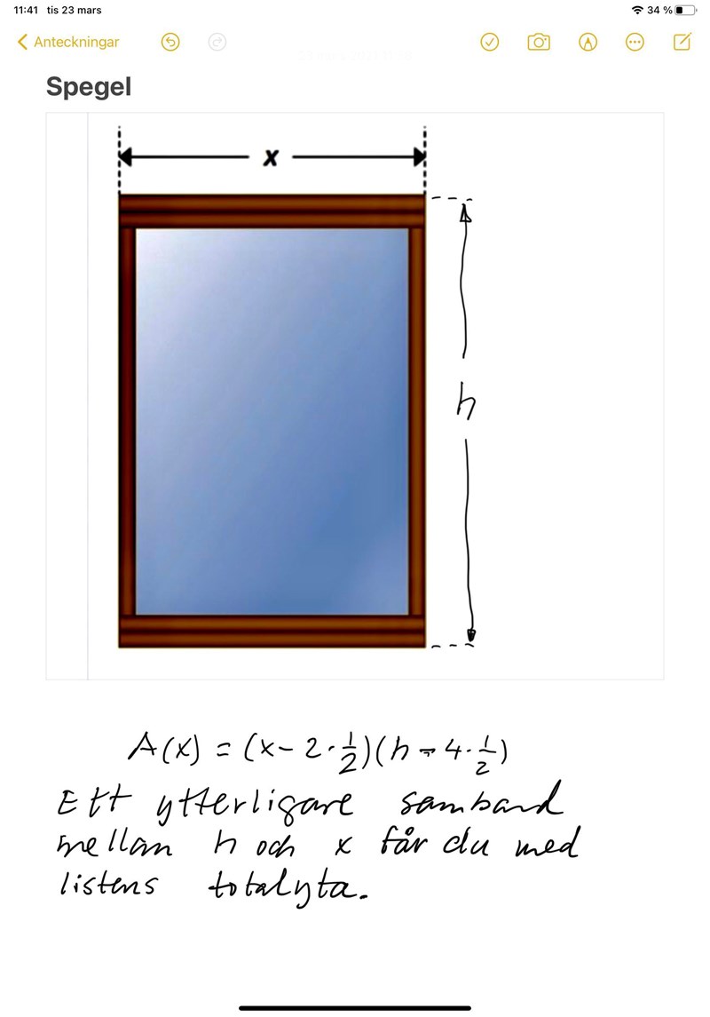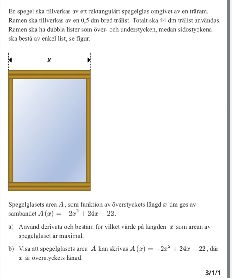 Den totala listytan som är 44*(1/2) dm2 hjälper dig att beräkna A(x).